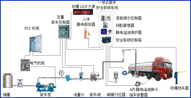 2、API底裝靜電溢油保護(hù)器帶聲光報(bào)警輸出,方便現(xiàn)場(chǎng)操作人員及時(shí)了解裝車狀態(tài);